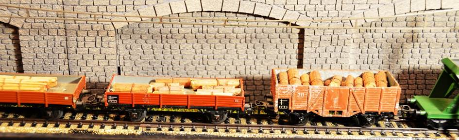 dem Bau der Anlage von 1982 vier offene Güterwagen vom VEB Piko