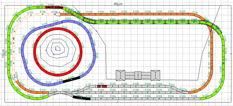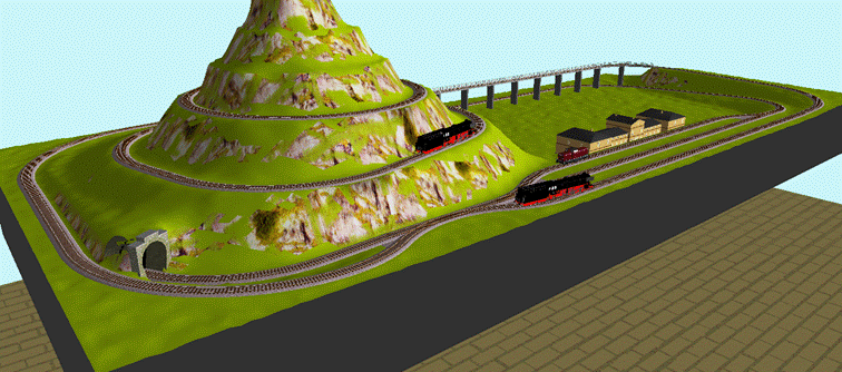 nur die Ergänzung des hier in Rot ausgeführten Kreises für den Schienenbus. 3D-Simulation |