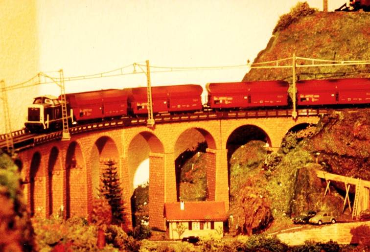 Wäldchen eine Ausweichstelle für Zugbegegnungen. Nach dem Viadukt links