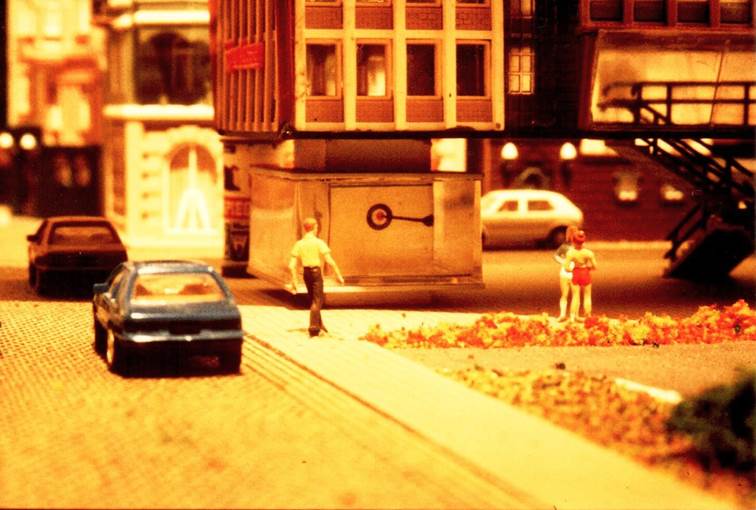 logistischen Gründen auf der Brücke abgestellt und blockierte die Strecke. Stadteindrücke – Die Baustelle