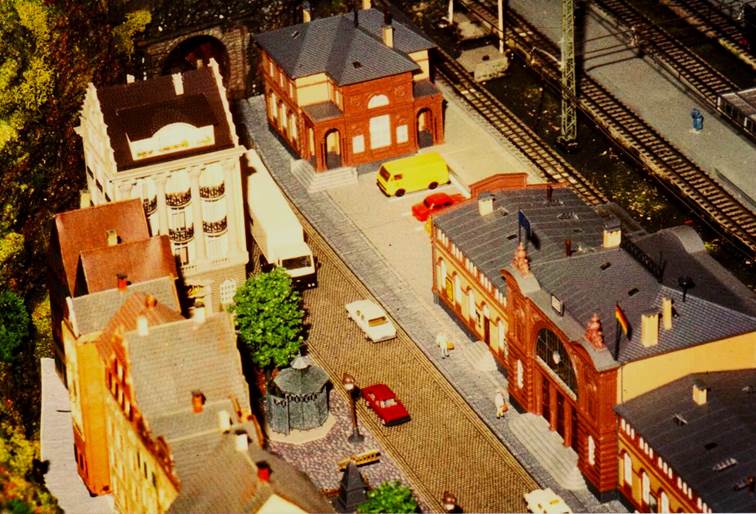 die engen Straßen. Die Tankstelle VW-Käfer im historischen Hinterhof Der Hauptbahnhof - Blick in die
