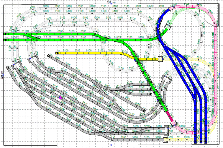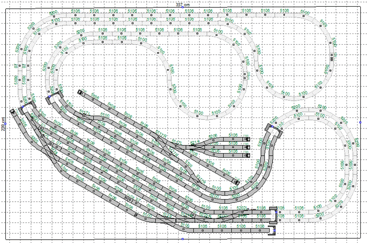 Gleisverlauf über alle Ebenen ausgesehen haben. Plan der Anlage – Grundebene Hier sieht man die komplette