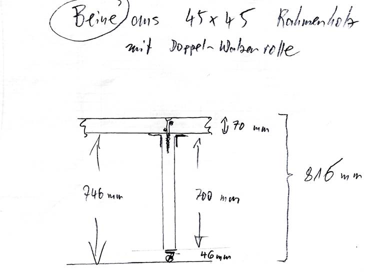 Unterbau keine Beine in der Mitte haben, sondern jeweils vier vorne und vier