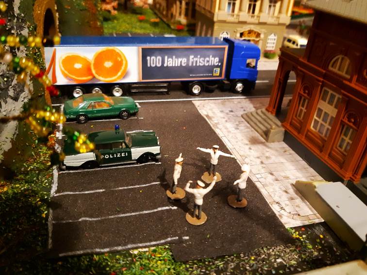 seine Protagonisten eher mit dem Auto reisen. Besondere Ecken Diese vier Polizisten diskutieren auf
