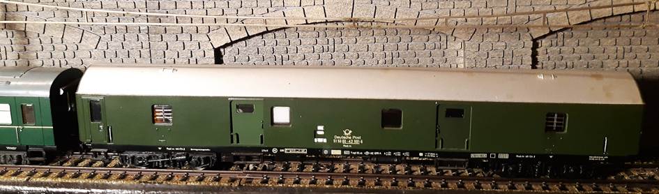 dem Bau der Anlage von 1982 den Postwagen von dem VEB Modellbahnwagen